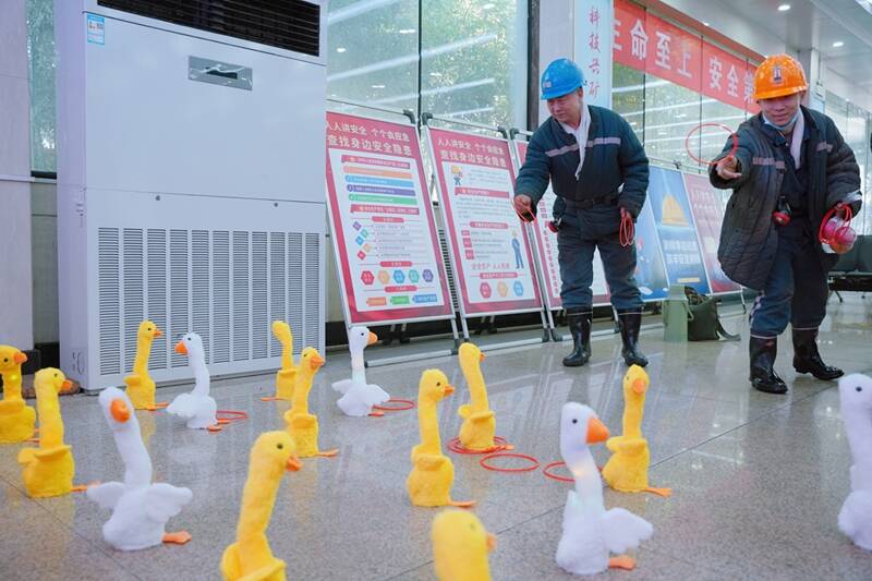 为进一步丰富活动形式,让安全理念入脑入心、落地生根,活动现场还穿插了趣味十足的“幸福套圈”互动活动。一只只憨态可掬的小鸭子毛绒玩具,打开开关身体便左右摇摆,播放喜庆歌曲,灵动可爱,为现场平添了满满的欢乐与温馨。现场职工们热情高涨、踊跃参与,大家手持套圈,凝神瞄准、轻轻掷出,欢声笑语在候罐室内久久回荡。职工们在轻松有趣的互动中,套住平安顺遂,圈住幸福美好。