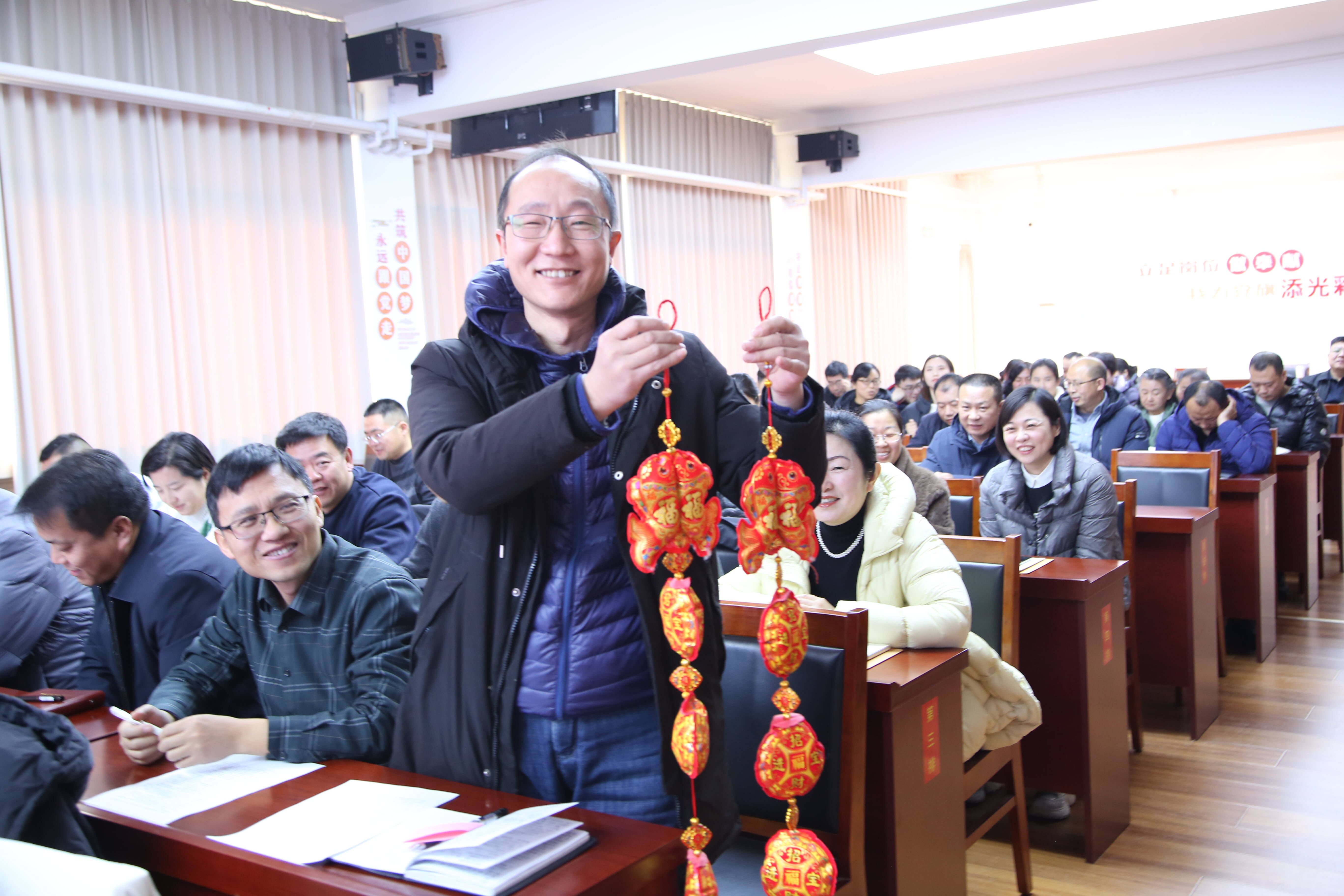 宣讲还穿插答题送祝福环节,题目涵盖山东能源、兖矿能源、教培中心2026年工作会议精神、形势任务教育等内容,主持人念完题目,职工们便纷纷举手、踊跃抢答,工作人员为答对人员送上福字、福袋、春联等春节挂件。现场气氛十分热烈,有的从容应答、思路清晰,有的相互提醒、默契配合,思维的碰撞间凝聚着奋进力量,在知识的重温中传递着对企业发展的美好期盼。现场掌声、欢呼声此起彼伏,充分展现了广大职工昂扬向上、积极进取的精神风貌。