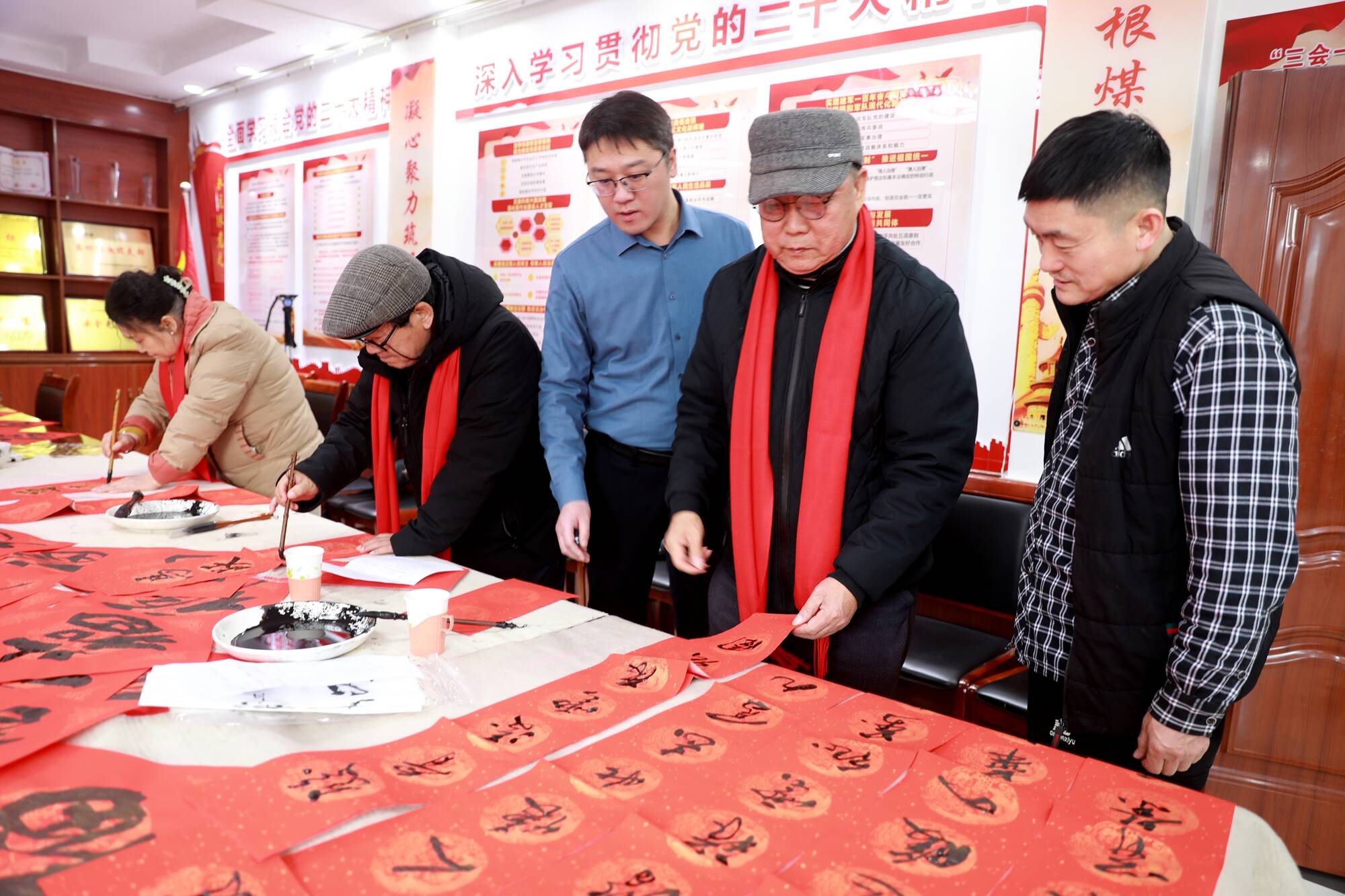 随着笔锋起落、墨色晕染,一幅幅饱含马年吉祥寓意的春联、一张张大红喜庆的“福”字跃然纸上,字迹工整隽秀、寓意美好绵长。“金马扬蹄开盛景,春风送暖启新程”,字字铿锵寄托着对矿井新一年高质量发展的美好憧憬;“岁岁平安皆顺遂,年年如意展宏图”,句句温情承载着对职工家庭幸福安康的温馨祈福,每一幅作品都饱含着浓浓的年味与深深的关爱。
