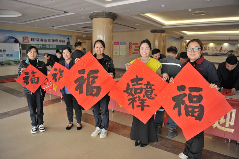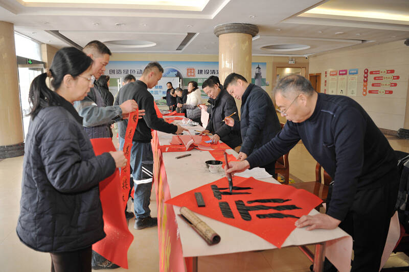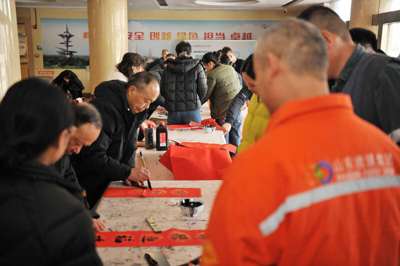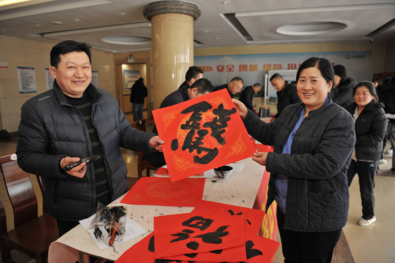 “骏马奔腾兴矿业,春风浩荡暖人心”“煤海扬帆凭马力,矿区焕彩启新程”“龙马精神守平安,马蹄奋进创佳绩”…… 活动现场暖意融融、人气爆棚。书法爱好者们凝神聚力,铺展起喜庆的大红春联纸,饱蘸浓墨后挥毫泼墨,一个个遒劲有力的汉字跃然纸上,将马年的昂扬斗志、煤矿人的职业荣光与对新年的美好憧憬完美融合。