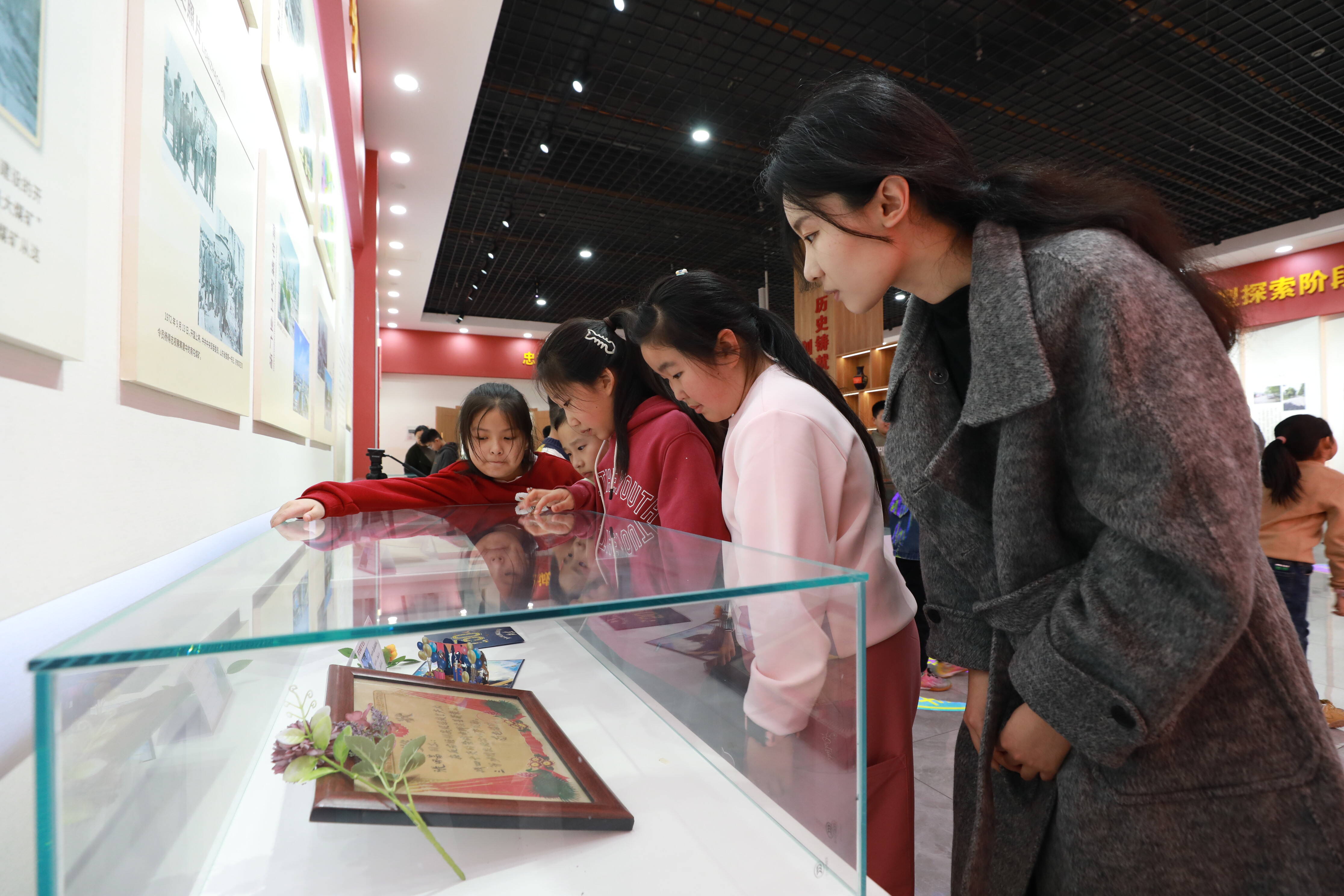 结业典礼后,孩子们在讲解员的陪伴下走进矿史馆。