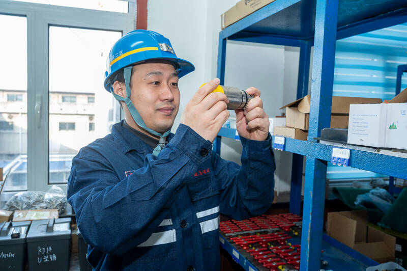 他首先关闭支架的截止阀、泄压后拆卸检查,发现管路内壁光滑无堵塞,排除了供液系统故障的可能。随后,他将目光转向结构复杂的阀组,但阀组窜液声音微弱,常规摸振动、感温度的方法难以定位。这时,唐敏杰想起比武训练中摸索出的听声辨位技巧,他拿出螺丝刀,一端贴紧阀组和电磁阀,另一端贴紧耳朵,像医生听诊般逐点细听液压流动的声音。当螺丝刀贴到第三个电磁阀时,他敏锐捕捉到一丝不同于其他部位的“滋滋”声,“就是这里窜液!”更换电磁阀后,他进行邻架操作测试,支架动作恢复流畅,彻底解决了这一“顽疾”。