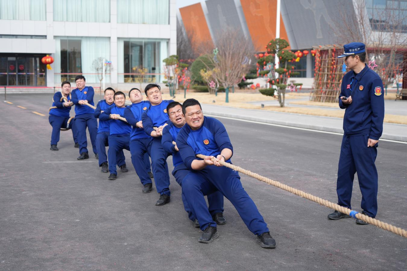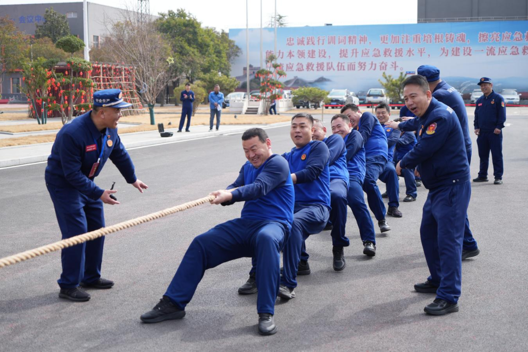 上午9时30分,拔河比赛率先拉开帷幕。来自各中队的10支队伍精神抖擞,斗志昂扬。随着裁判哨响,赛场瞬间化为力量的角力场。队员们紧握长绳,重心下沉,在整齐划一的口号声中协力拼搏。场边啦啦队呐喊助威,声浪此起彼伏。一根绳索,凝聚着同心同向的团队意志;一次次坚持,彰显了最美逆行者团结拼搏、攻坚克难的铁军风采,更在力量角逐中淬炼了不服输、不放弃的韧劲与干劲。