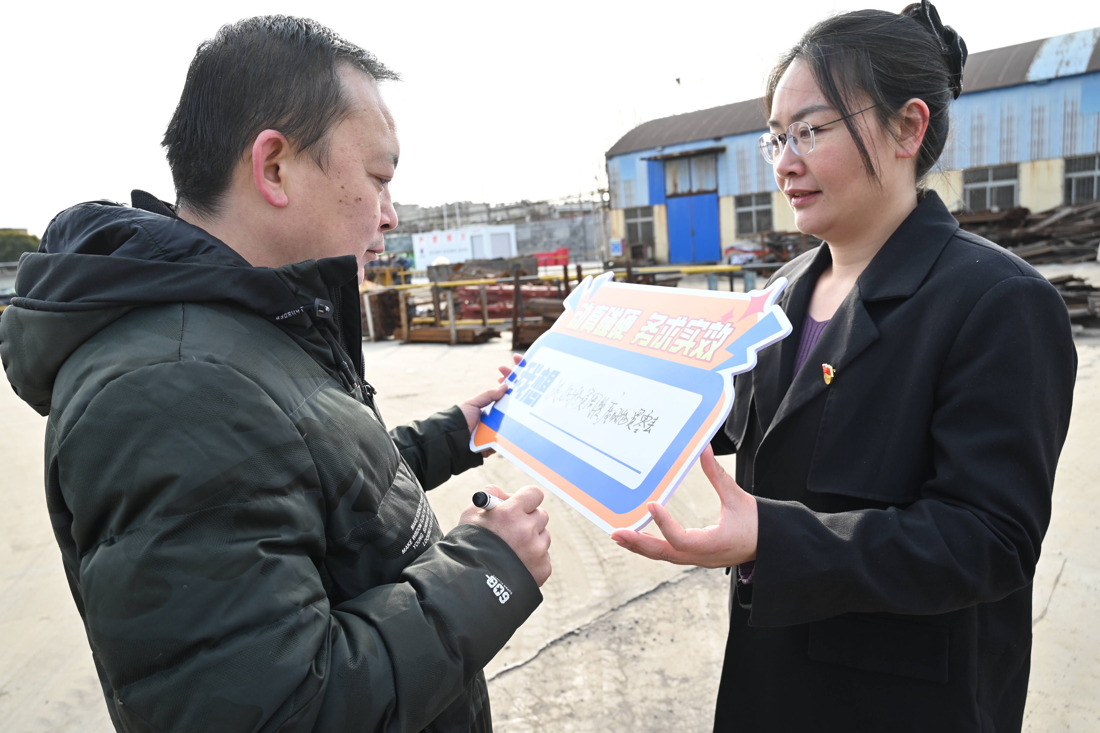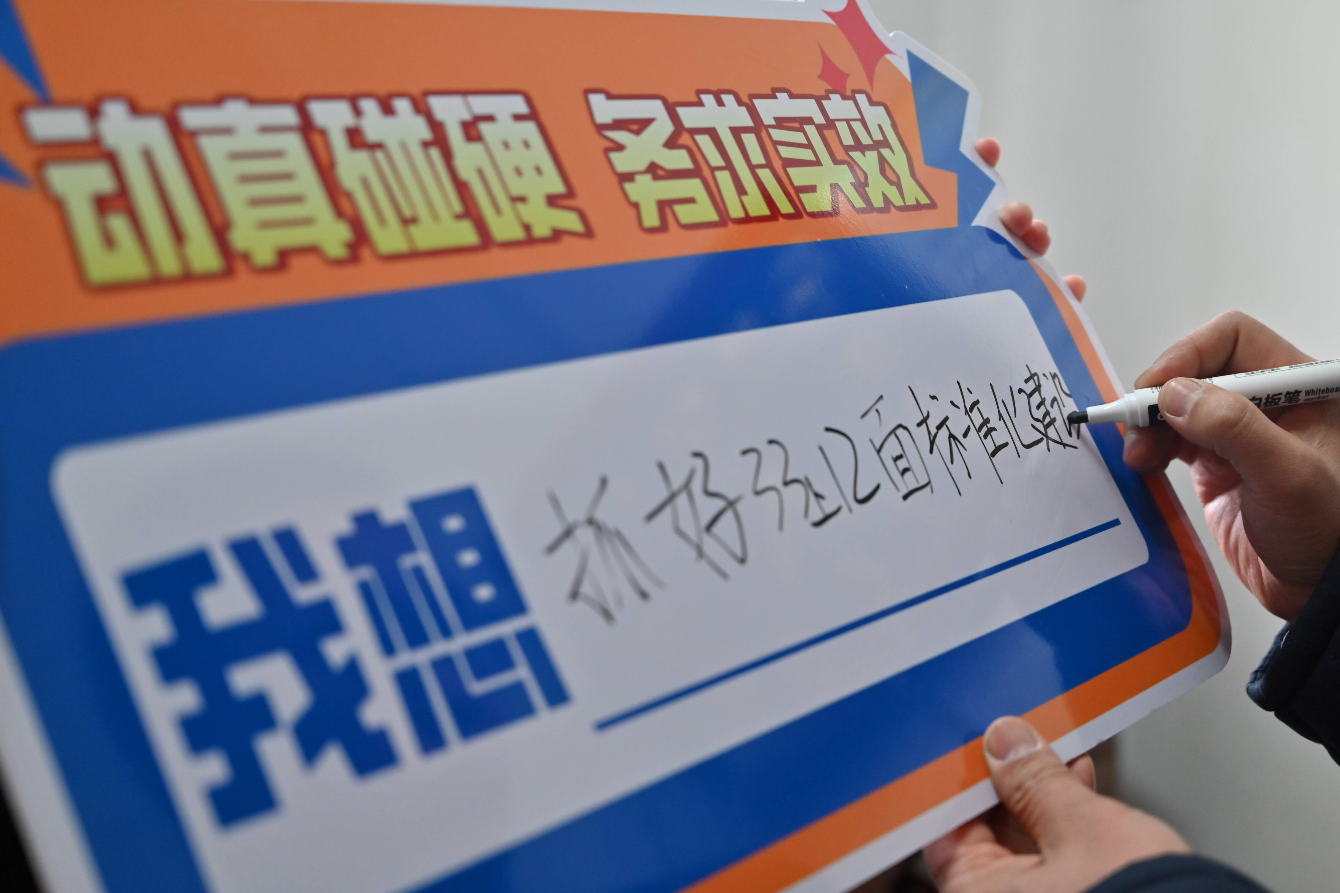 为什么一场宣讲需要两个人?为解决“上热、中温、下冷”的思想温差问题,我们创新设计了“破冰”环节——手持牌板合影以及互动问答。