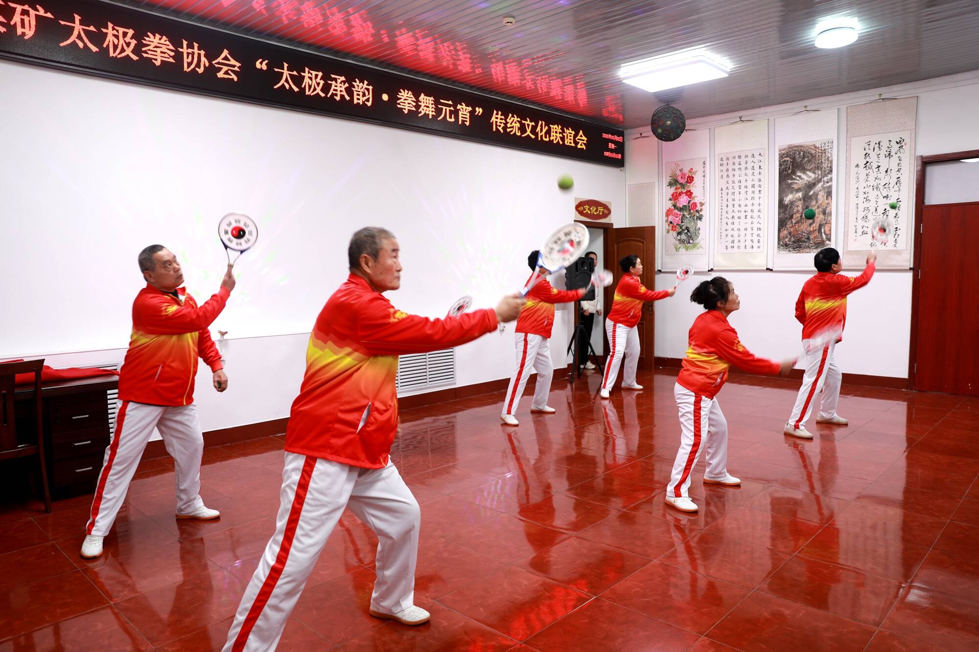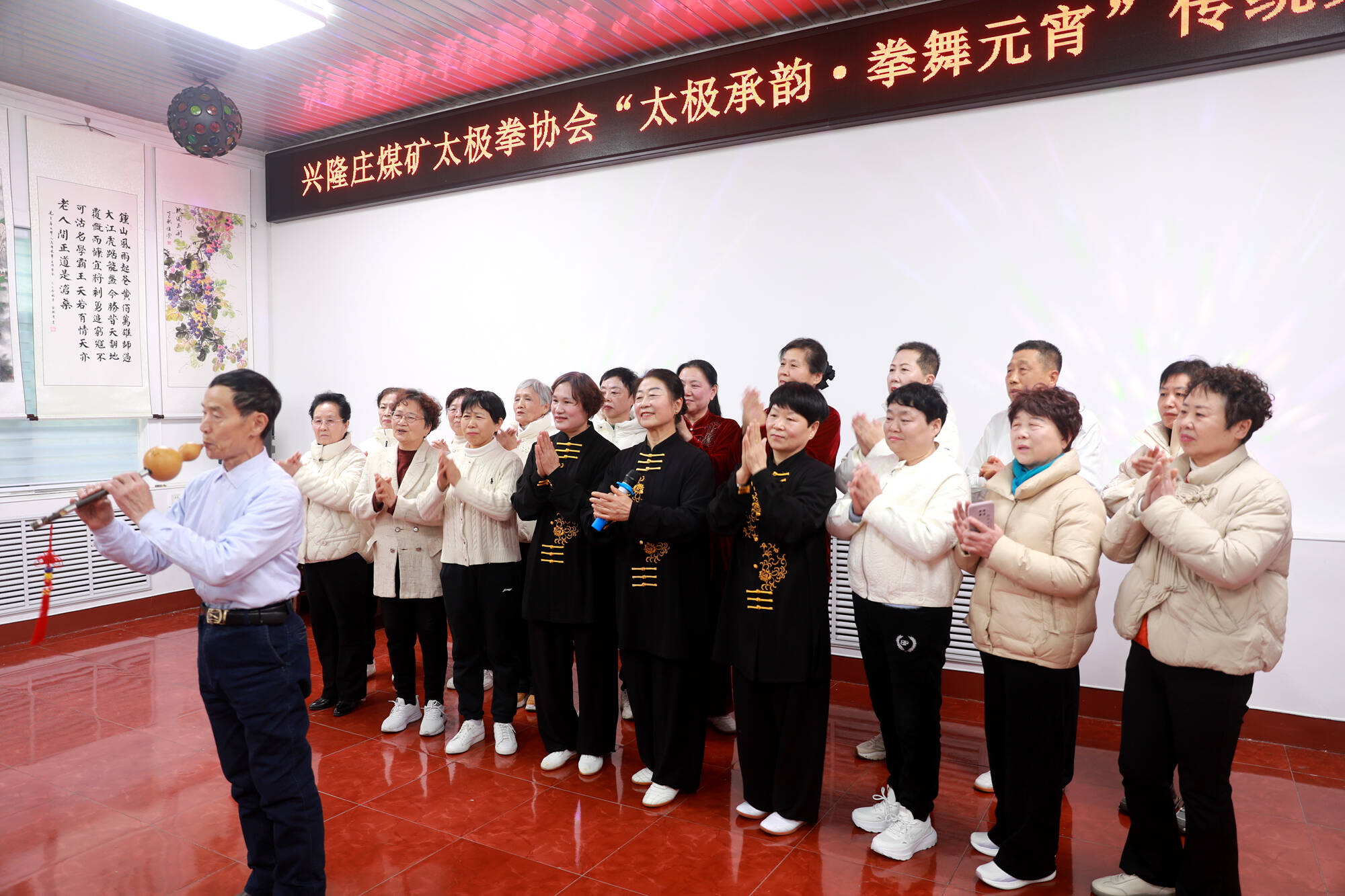 为推动矿区文体活动走深走实,丰富节日文化生活,营造春节、元宵节欢乐祥和氛围,兴隆庄煤矿综合服务中心活动室内锣鼓喧天、热闹非凡,百余名离退老同志、职工群众欢聚一堂,以拳会友,以舞传情,共度佳节,为全矿干部职工家属献上新春的祝福。