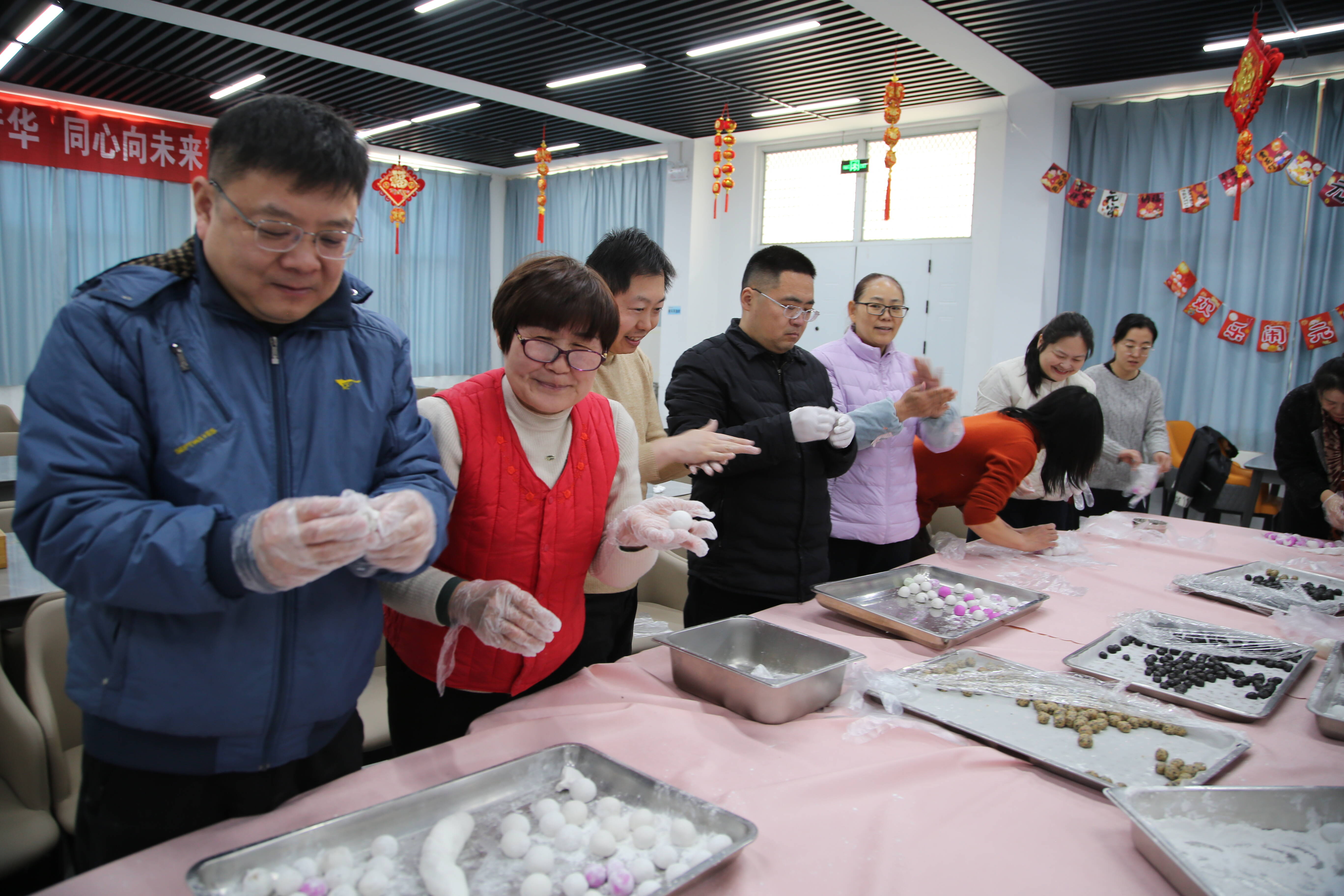 活动现场经过精心布置,红彤彤的灯笼悬挂其间,精致的中国结点缀角落,处处洋溢着浓郁又温馨的节日气息。糯米粉、黑芝麻馅、豆沙馅、花生馅等各类包汤圆食材整齐陈列在餐桌上。工作人员提前做好筹备工作,从食材采购、现场布置到流程衔接,每一个环节都细致周到。活动开始后,工作人员耐心细致地为大家讲解包汤圆的技巧、步骤与注意事项,从面团的软硬把控、馅料的用量拿捏,到搓圆的手法技巧细致指导,确保每位职工都能快速上手、体验乐趣。参与活动的职工们热情高涨、兴致盎然,大家自发围坐成桌、亲密协作,平日里在工作岗位上履职尽责、精益求精的“行家里手”。大家挽起袖子、各显身手,揉面团时力道均匀,擀面皮时厚薄适中,放馅料时分量恰当,搓圆球时手法娴熟,动作认真细致、配合默契十足。指尖翻飞间,一颗颗圆润饱满、形态各异的元宵便整齐摆满了托盘,有的圆润光滑,有的小巧玲珑,每一颗都饱含着大家对未来美好生活的真挚期盼和祝福。