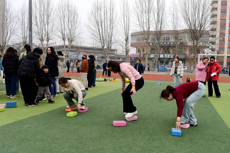 “同舟共济”更是考验着家庭的协作智慧,靠两块“筏子”交替前进,大家相互扶持、合理规划,在一步步向终点迈进的过程中,感受着家庭成员间的信任与支持,让趣味赛场成为传递亲情的温馨舞台。