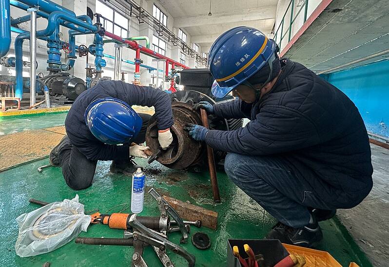为高效解决设备隐患、践行降本增效理念,维修队迅速响应,组织技术骨干赶赴现场,通过设备点检“看、听、闻、摸、记”五字工作法,精准研判故障根源,并科学制定详细自主维修方案。维修中大家分工明确、默契协作,面对作业空间狭小、部分部件锈蚀粘连等难题,凭借丰富的实操经验和严谨的工作态度,依次完成泵体维修。经带载测试试运,能源供水泵运行平稳,电机振动值、运行温度、噪声等各项指标均符合设备安全运行标准。