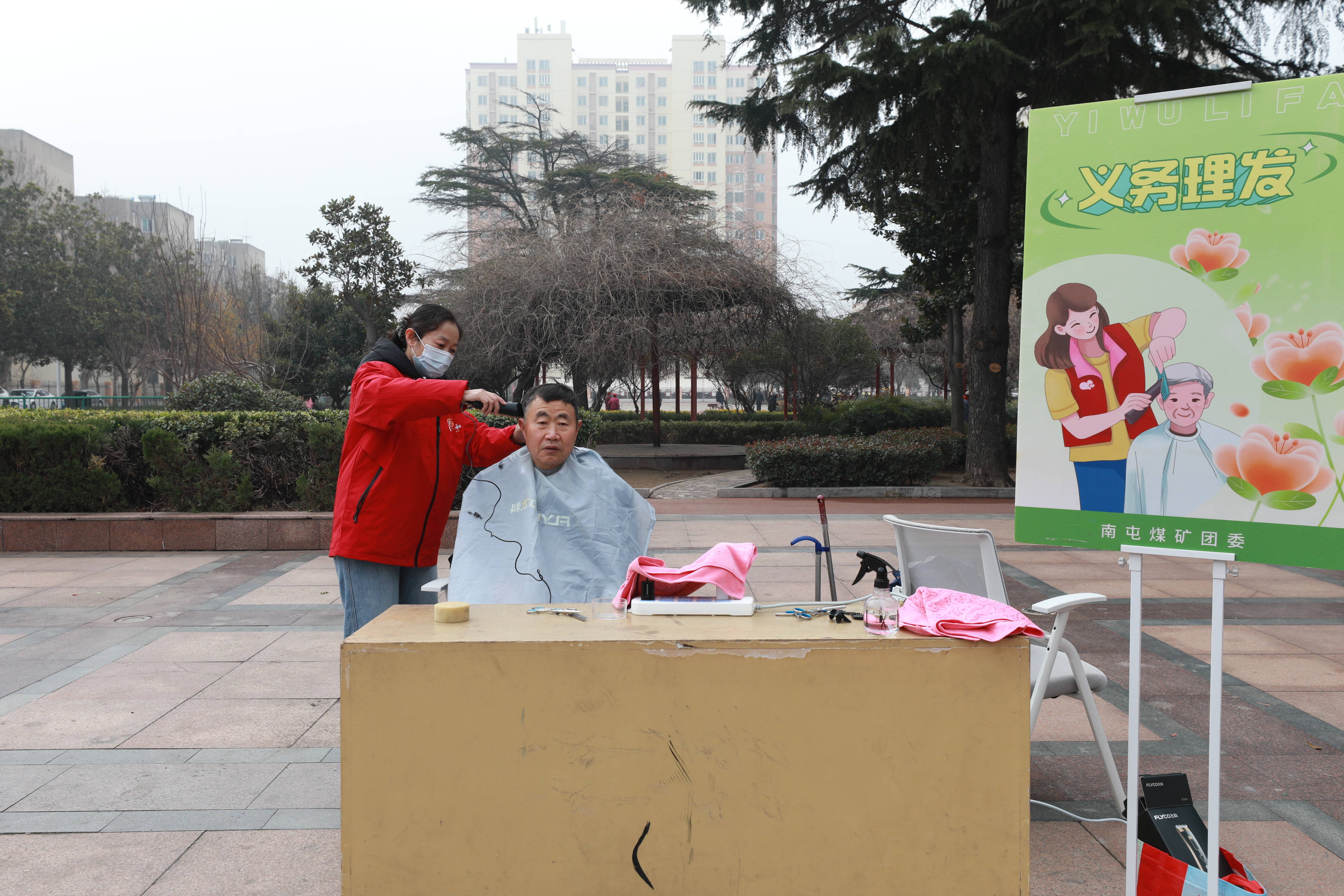 “来了来了,每年这时候就盼着你们!”3月3日,南屯煤矿俱乐部广场上,一位老大爷熟门熟路地来到理发摊位前。
