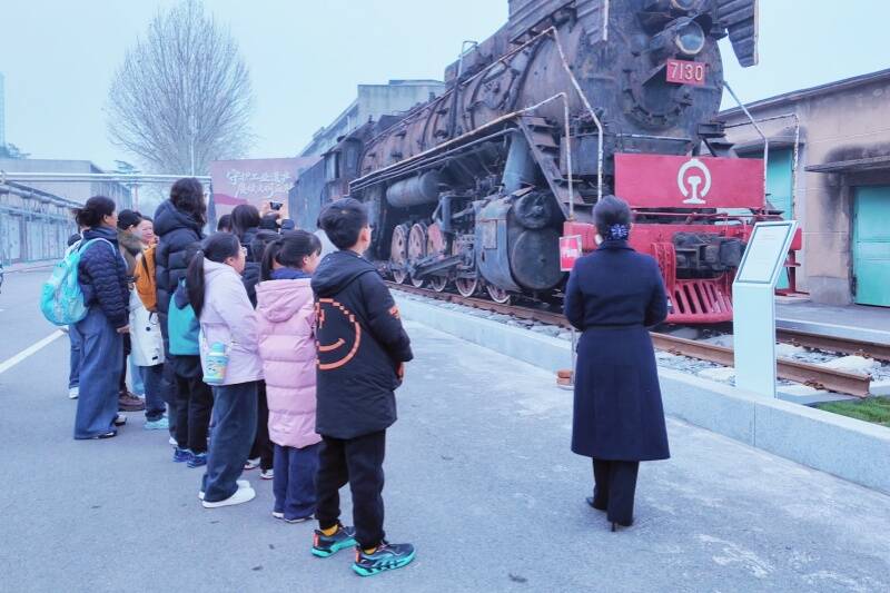 文化之旅的第一站——邹城兖州矿区铁路博物馆。女职工们放慢脚步,带着小朋友认真聆听讲解员的细致介绍,孩子们睁着好奇的眼睛,盯着玻璃展柜里斑驳的老物件、泛黄的史料照片,时不时拉着妈妈的衣角追问:“妈妈,这个是以前运煤的火车吗?”“这些旧工具是叔叔阿姨们用过的吗?”