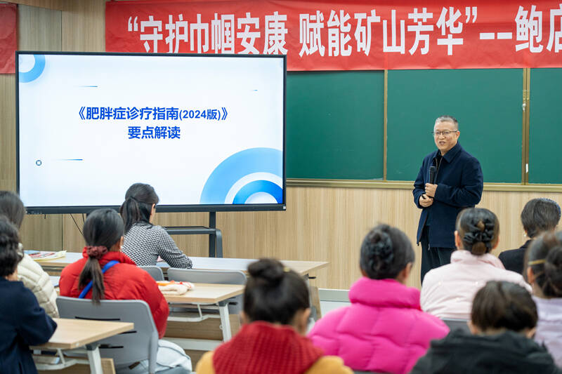 在随后的《肥胖症诊疗指南》要点解读中,授课专家围绕女职工关注度极高的科学减重话题展开分享,精准戳中女职工产后发福、中年体重上升的困扰。他结合煤矿女职工岗位工作繁忙、缺乏运动的特点,逐一破除节食、乱吃减肥药等常见减肥误区,强调“健康优先、科学减重”的理念。同时,他分享了适合职场女性的简单易操作饮食搭配方案和碎片化运动技巧,兼顾营养均衡与体重管理,还现场解答了女职工关于乳腺、肛肠等常见健康问题,让大家学会科学管理体重、守护自身健康。