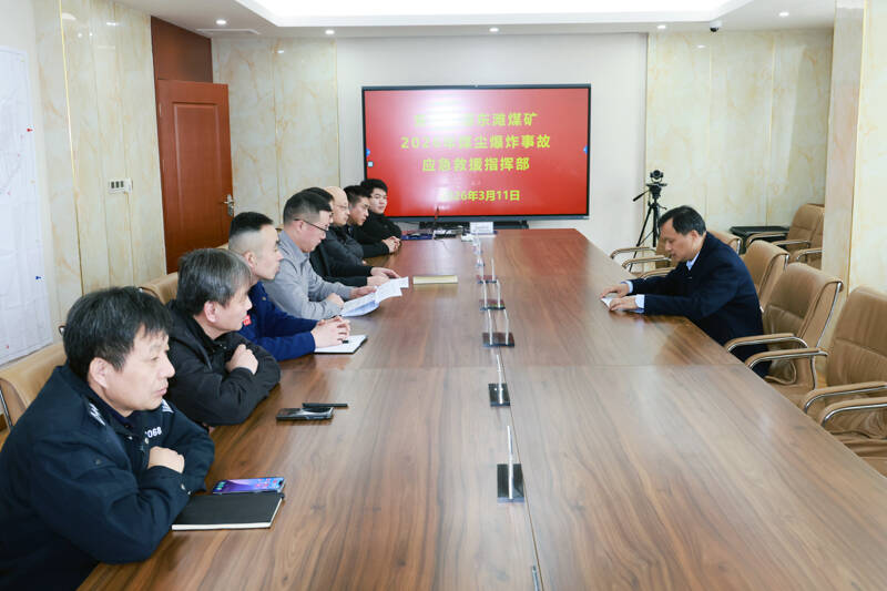 3月11日,我矿举行煤尘爆炸事故专项应急预案演练,进一步检验我矿生产安全事故应急预案的科学性、实效性及可操作性,提高各级管理人员、救护人员应急反应和处置能力、职工自救互救和妥善避灾能力。