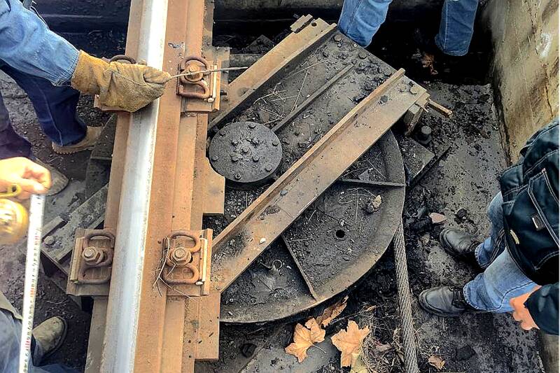 轮子缩小后,为避免钢丝绳位置跑偏,团队精准计算,将新导向轮的中心向铁路中心偏移,确保钢丝绳的牵引轨迹分毫不差,保障了系统运行的平稳与精准。