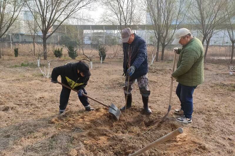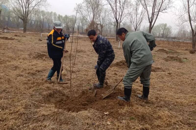 三月的矿区,风携暖意、土润新芽。植树现场,职工们热情高涨、干劲十足,分工明确、配合默契,每一个环节都一丝不苟、精益求精:挥锹挖坑的职工,弯腰发力间,铁锹铁刃稳稳没入土层,细碎的破土声奏响春日劳作的序曲;扶苗定植的职工,小心翼翼将树苗放入坑中,扶正对齐后,用脚将根部泥土层层踩实,确保每一株苗木都扎根稳固;修剪整形的职工,手持剪刀穿梭在树苗间,仔细观察枝条走向,“咔嚓”一声精准剪除病弱枝桠,用“剪去负担、助力生长”的巧思,为苗木后续健康牛长筑牢基础;浇水灌溉的职工,拖着水管在树苗间穿梭,水柱划出优美弧线,精准落在树苗根部,晕开深浅不一的湿痕,水珠顺着枝条滚落,在地面砸