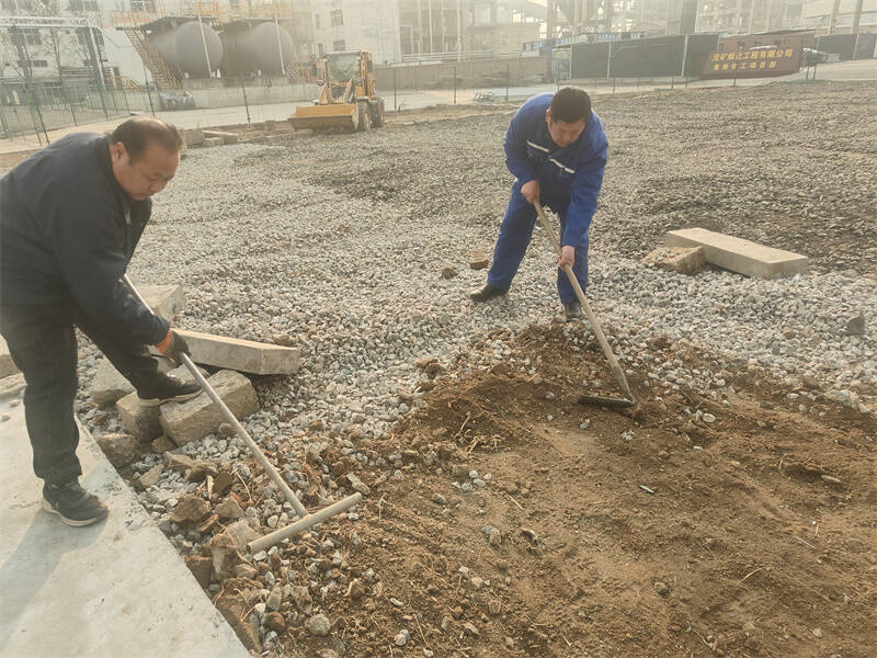 面对这一难题,机车队负责人张宗昌经理主动担当,充分发挥带头表率作用。在现场任务相对宽松的时段,他带领班组人员投身开荒工作,大家分工协作,有的手持镰刀清理杂草荆棘,有的抡起铁锹搬移乱石瓦砾,有的丈量规划场地边界,有的动手堆砌围挡、摊铺水泥。
