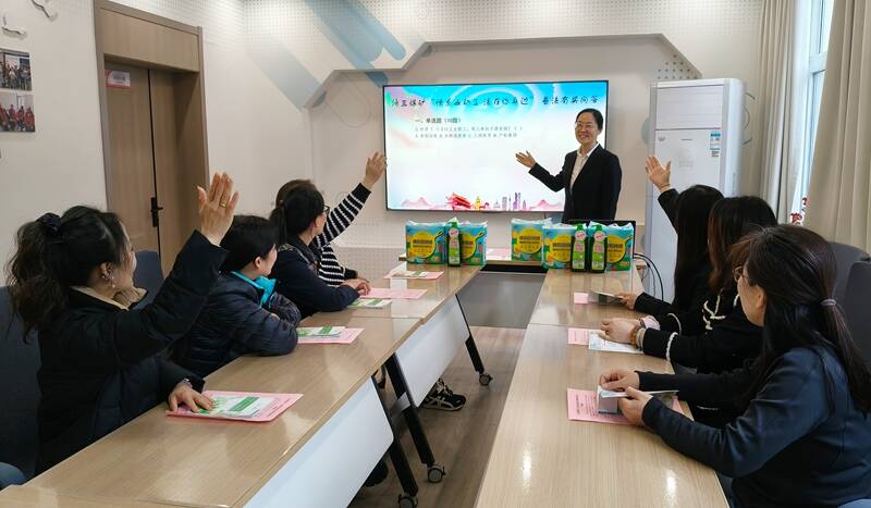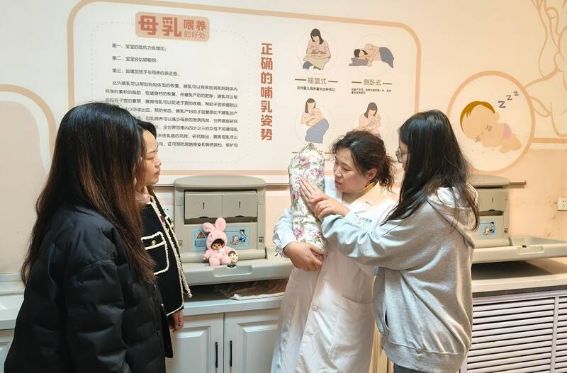 与此同时,群团服务中心“妈妈小屋”内,一场“手把手”婴幼儿护理实操培训正在进行。来自山东颐养健康集团的护理师,用模拟婴儿模型、抚触油、奶瓶等教具,采取“理论+实操”方式,细致讲解新生儿拍嗝、脐部护理、科学喂养、黄疸观察等实用技能。