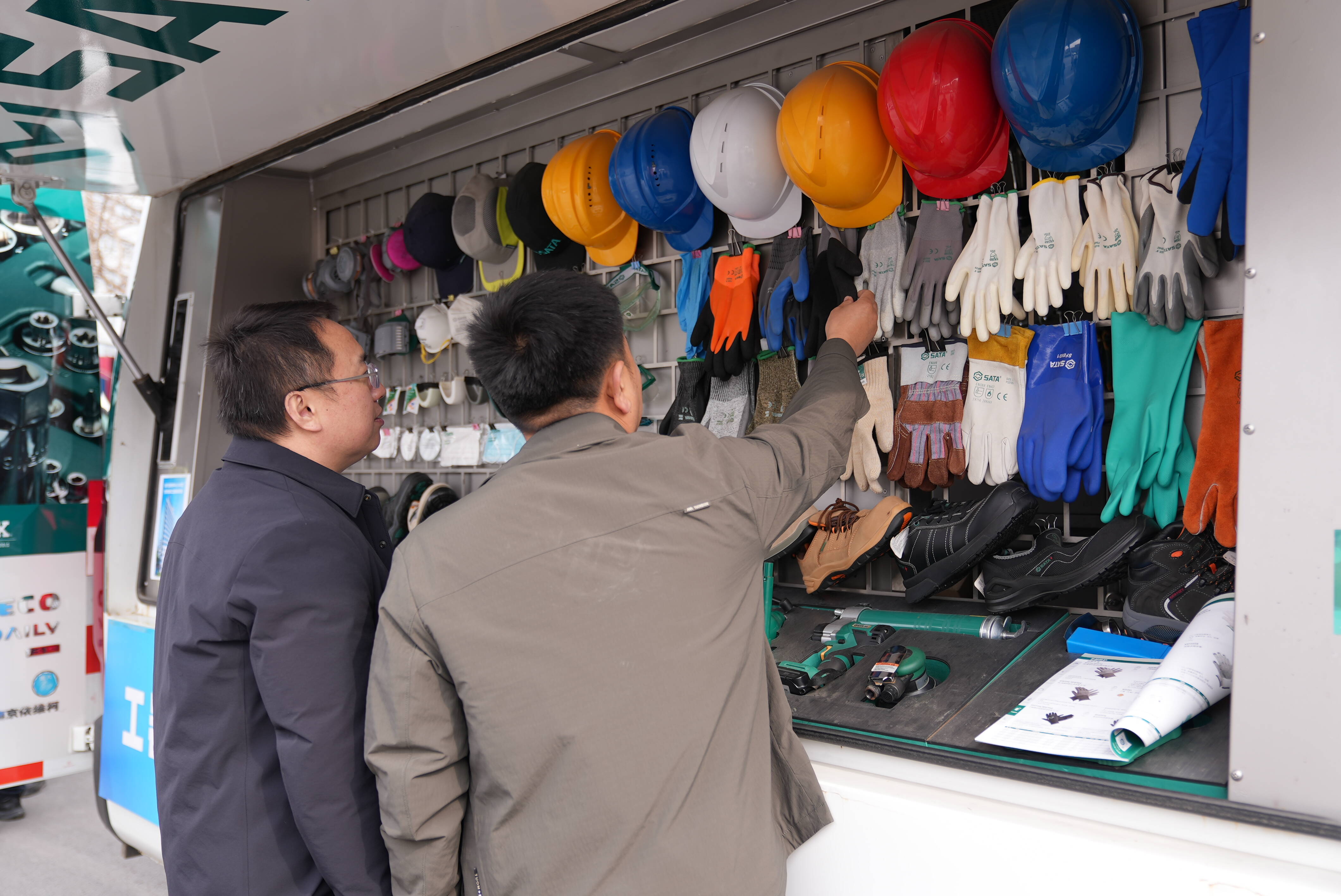 说是“展示”,更像一场“沉浸式体验”。劳保用品区、洗化用品区、工器具区依次排开。安全帽、工矿靴、防尘口罩、安全鞋、洗发水、锂电钻、手拉葫芦……上百种来自行业知名厂家的拳头产品,第一次如此集中地展现在职工们面前。