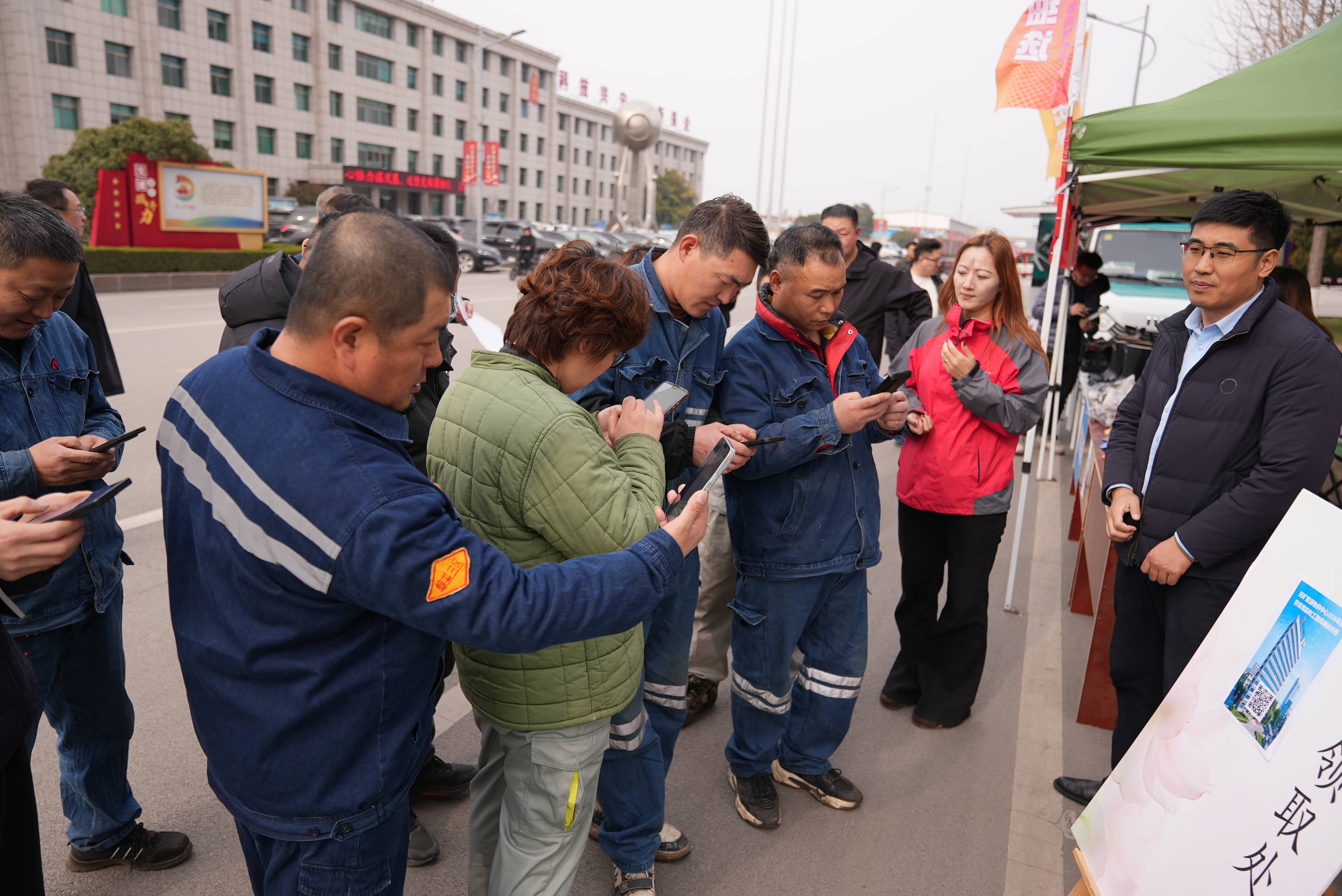 临时搭建的展示棚里,站满了围观的工友。