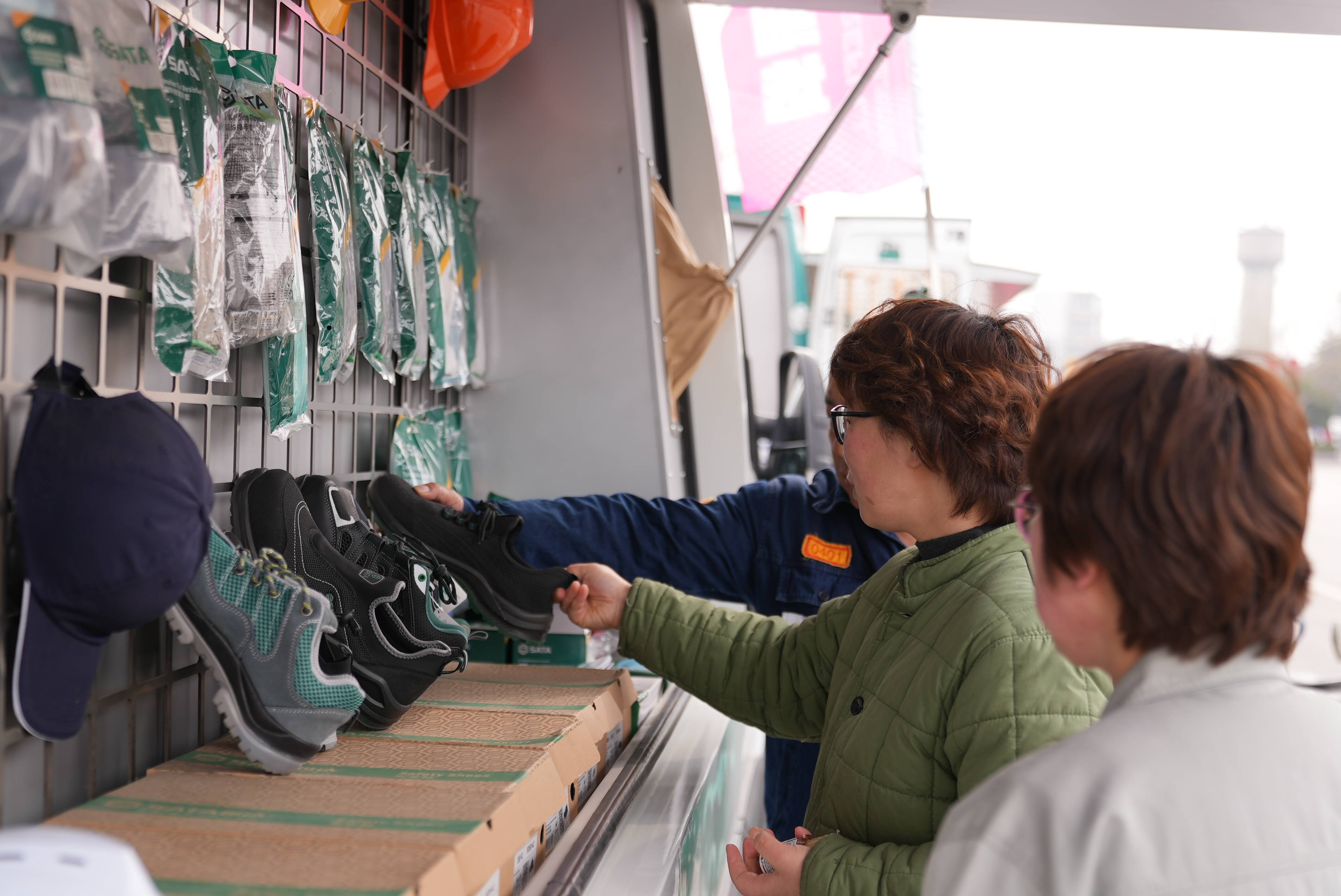 有人把新款安全帽戴了又摘、摘了又戴,有人拿着两把不同厂家的电动工具反复掂量,还有人挤在洗化用品区,凑近闻了闻洗发水的味道,抬头问了一句:“师傅,这个……我们自己也能选吗?”