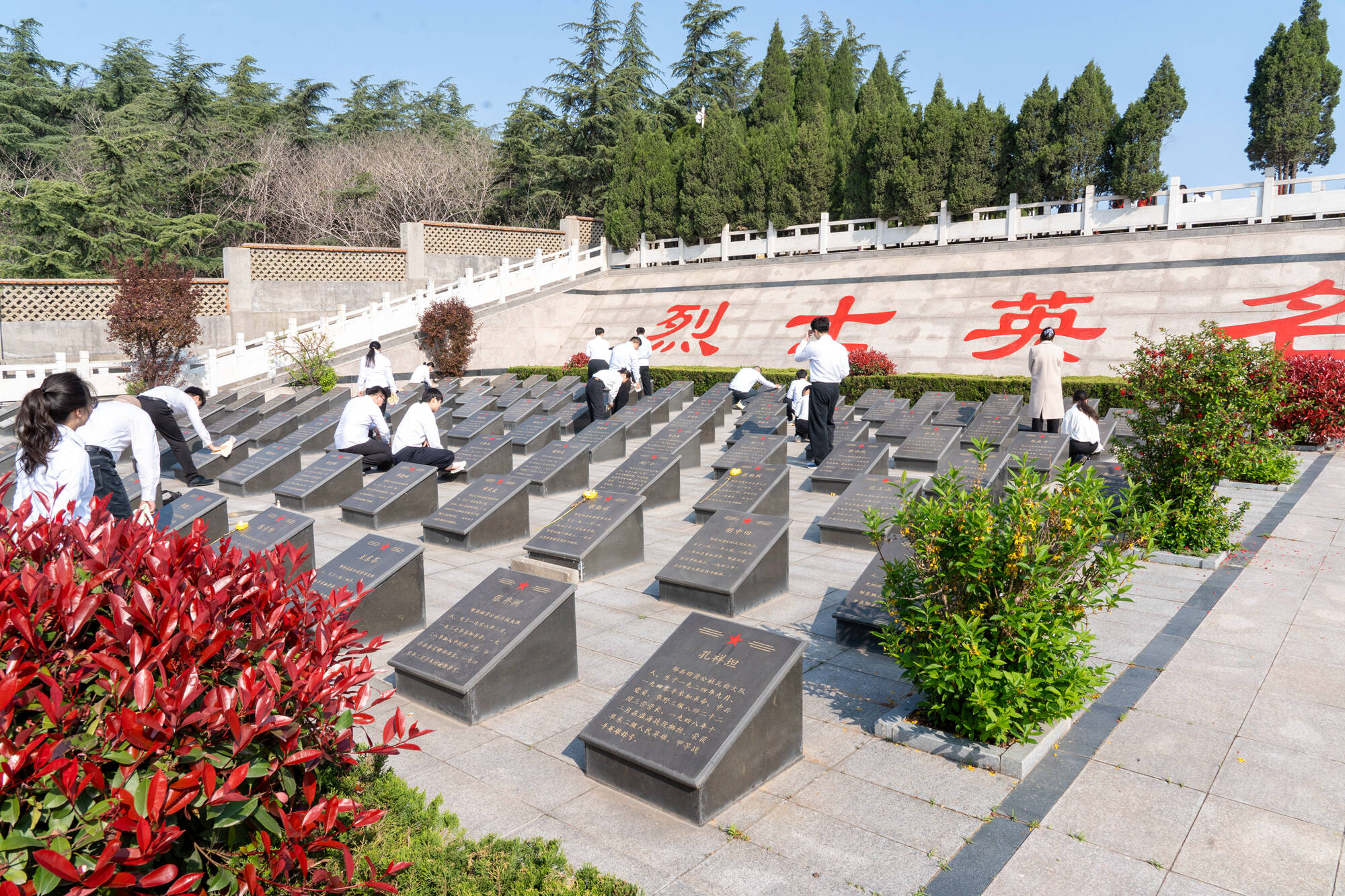 随后,大家分组开展墓碑维护工作,手持毛巾仔细擦拭每一块墓碑,清理墓间杂物,用实际行动告慰英烈英魂。驻足墓碑前时,青年们时而感慨先烈壮举,时而沉思历史使命,革命先烈的名字在心中久久回响,红色精神的种子在心底悄然生根。