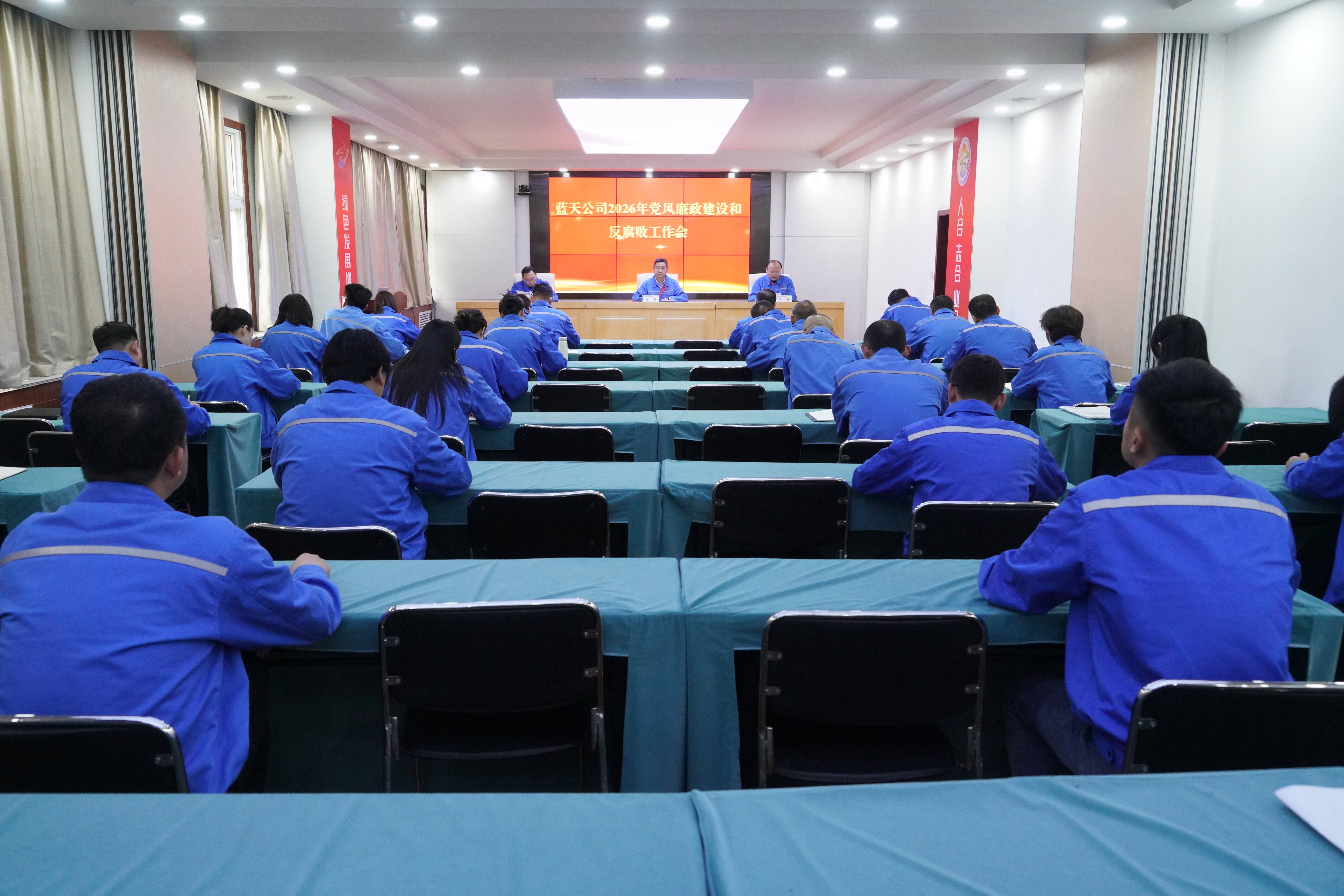 4月2日,蓝天公司党总支部召开2026年度党风廉政建设和反腐败工作会议,系统总结2025年工作,全面部署2026年重点任务,动员全体干部职工一以贯之推进全面从严治党,为公司提质增效、转型发展提供坚强纪律保障。