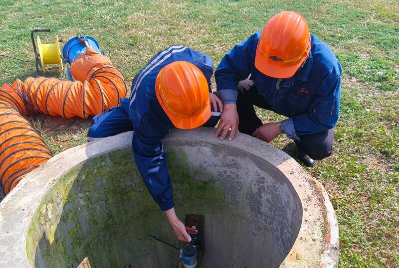 险情就是命令,救援刻不容缓。接到施工人员紧急汇报后,值班人员立即启动《有限空间作业现场处置方案》,火速通知应急救援人员赶赴现场。9时35分,应急处置小组带着气体检测仪、强制通风机、全身式安全带等应急物资火速抵达现场,矿卫生所医护人员同步赶到,现场迅速形成救援合力。
