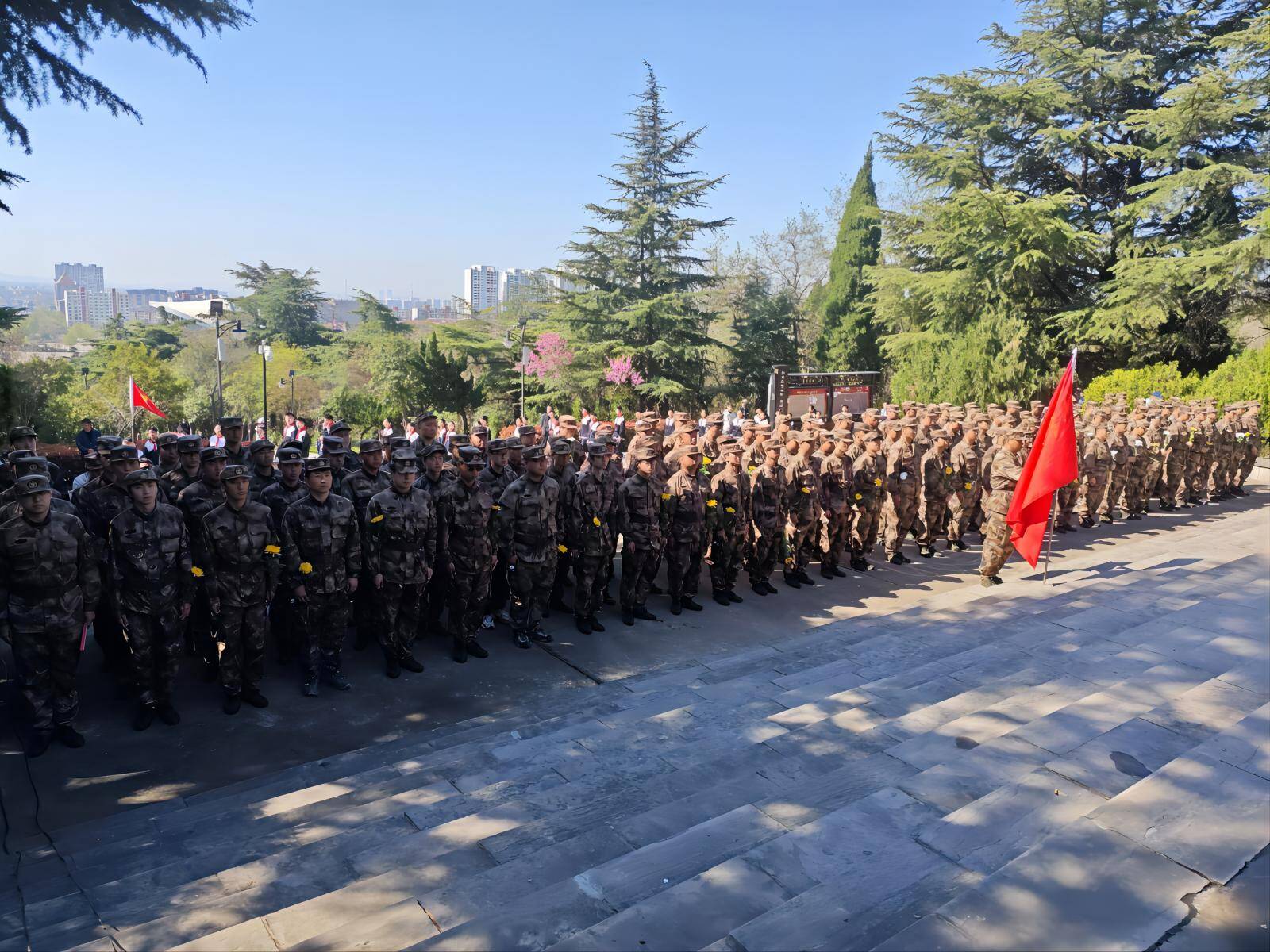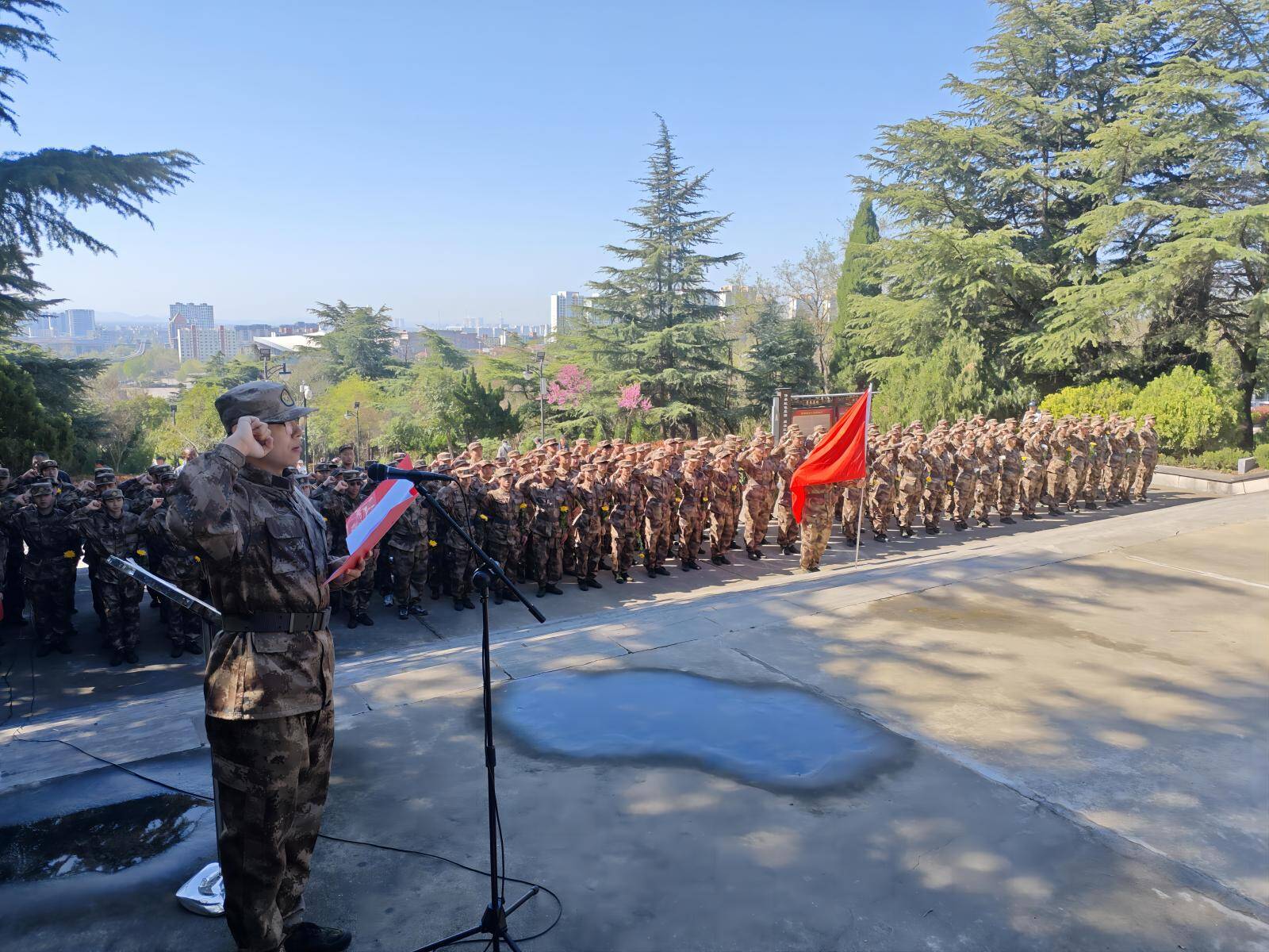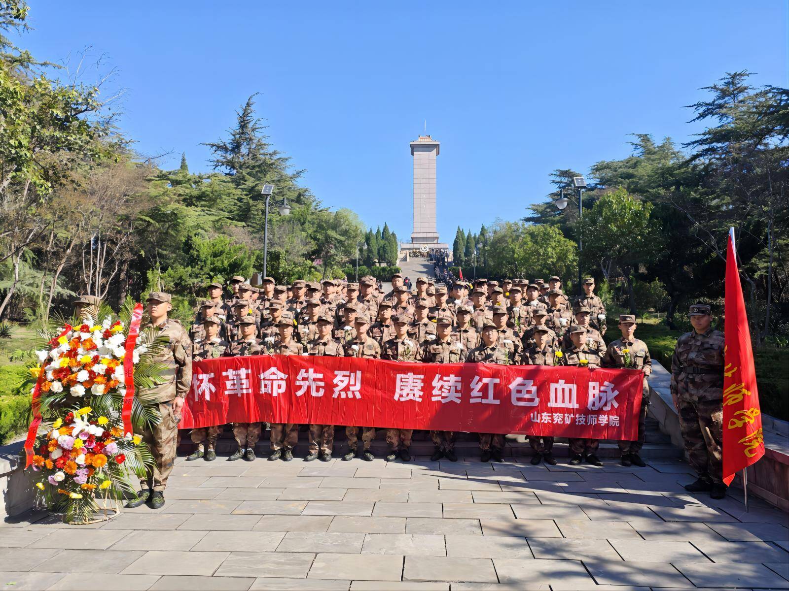 在深情的乐曲声中,学员代表缓步上前,向革命烈士敬献花篮,表达对先烈最崇高的敬意。全体学员在苏品源的带领下庄严宣誓,誓言铿锵、掷地有声,展现出青年学子不忘初心、砥砺奋进的精神风貌。