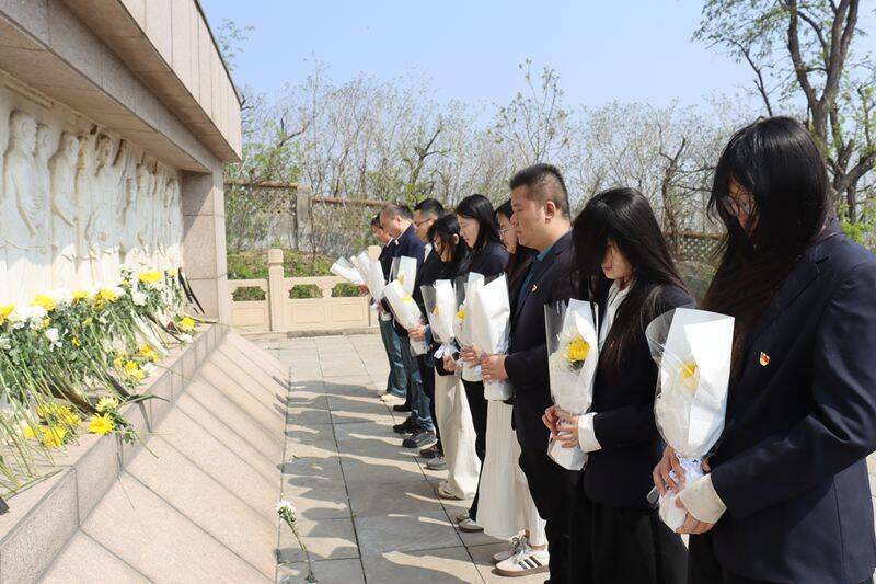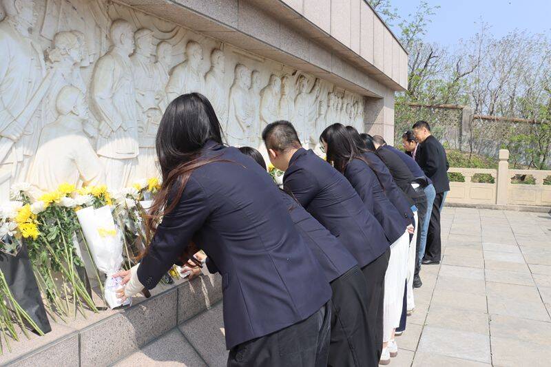默哀结束后,敬献花篮环节开始。公司团委代表缓步上前,小心翼翼地将承载着全体团员青年深切敬意的花篮敬献至烈士纪念碑前,花篮缎带上“缅怀革命先烈 赓续红色血脉”八个大字熠熠生辉,寄托着对英烈的深切缅怀与崇高敬意。随后,代表们整理花篮缎带,全体团员青年向革命烈士三鞠躬,以此表达对先烈们的无限哀思与敬仰之情,告慰先烈英灵。