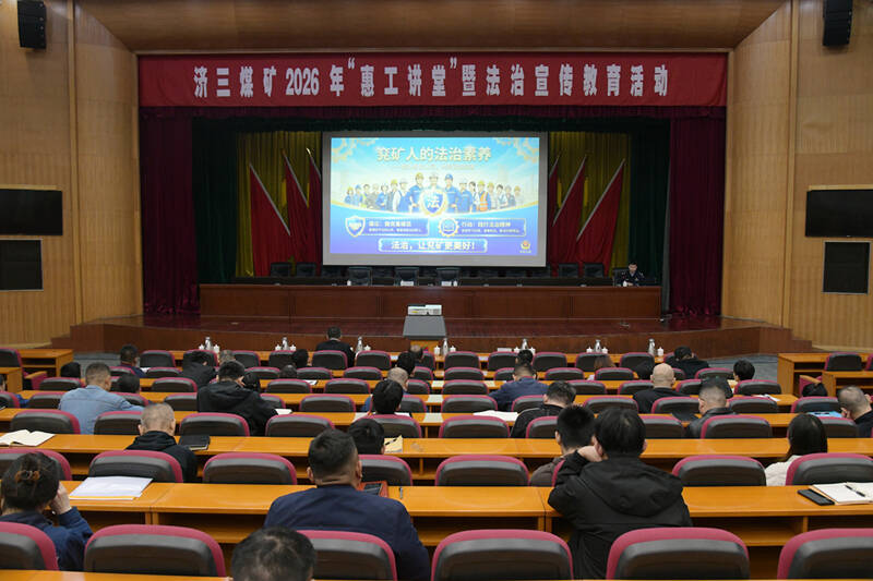 4月9日,济三煤矿开展2026年“惠工讲堂”暨法治宣传教育活动。贯彻落实习近平法治思想,通过专题普法宣讲强化干部职工法治素养,全力营造依法治矿、依法履职的浓厚氛围,为矿井平安建设与高质量发展筑牢法治根基。