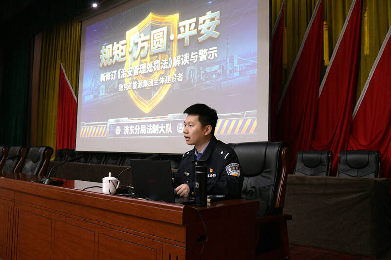 本次“惠工讲堂”特别邀请济东分局法制大队马警官授课。马警官以“规矩·方圆·平安”为主题,结合多年一线从警经验与矿山安全生产、日常管理实际,围绕新修订《中华人民共和国治安管理处罚法》核心变化、与职工生产生活密切相关的法律要点,用通俗易懂的语言、贴近矿山场景的典型警示案例,对法律条文进行系统解读与深度阐释,让法治知识入脑入心,增强培训针对性与实效性。