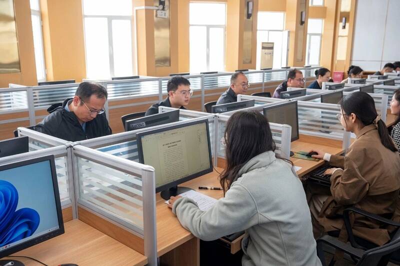 比赛现场,参赛选手认真作答、工作人员严格监考,整个考场井然有序、严肃认真。