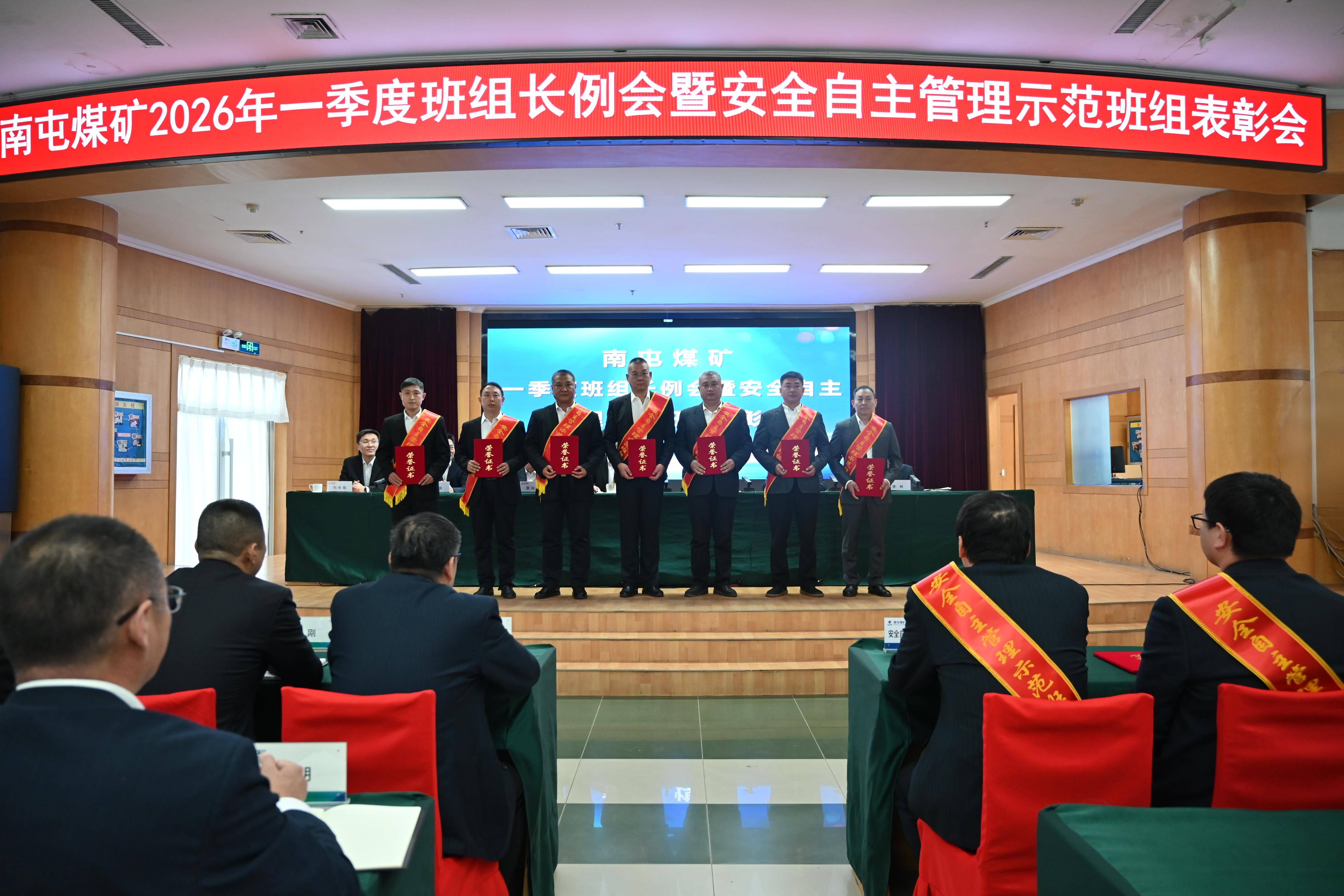 “班组稳则区队稳,区队稳则矿井安;班组强则基础强,基础强则发展稳!今天受到表彰的安全自主管理示范班组、优秀综掘机司机在日常工作中坚持标准不走样、执行制度不打折、排查隐患不放松、管控现场不缺位,用实实在在的行动守住了安全、稳住了现场、带好了队伍,全矿上下要对标先进找差距、补短板、强担当。”南屯煤矿矿长张相超在2026年一季度班组长例会暨安全自主管理示范班组表彰会上向全矿发出号召。
