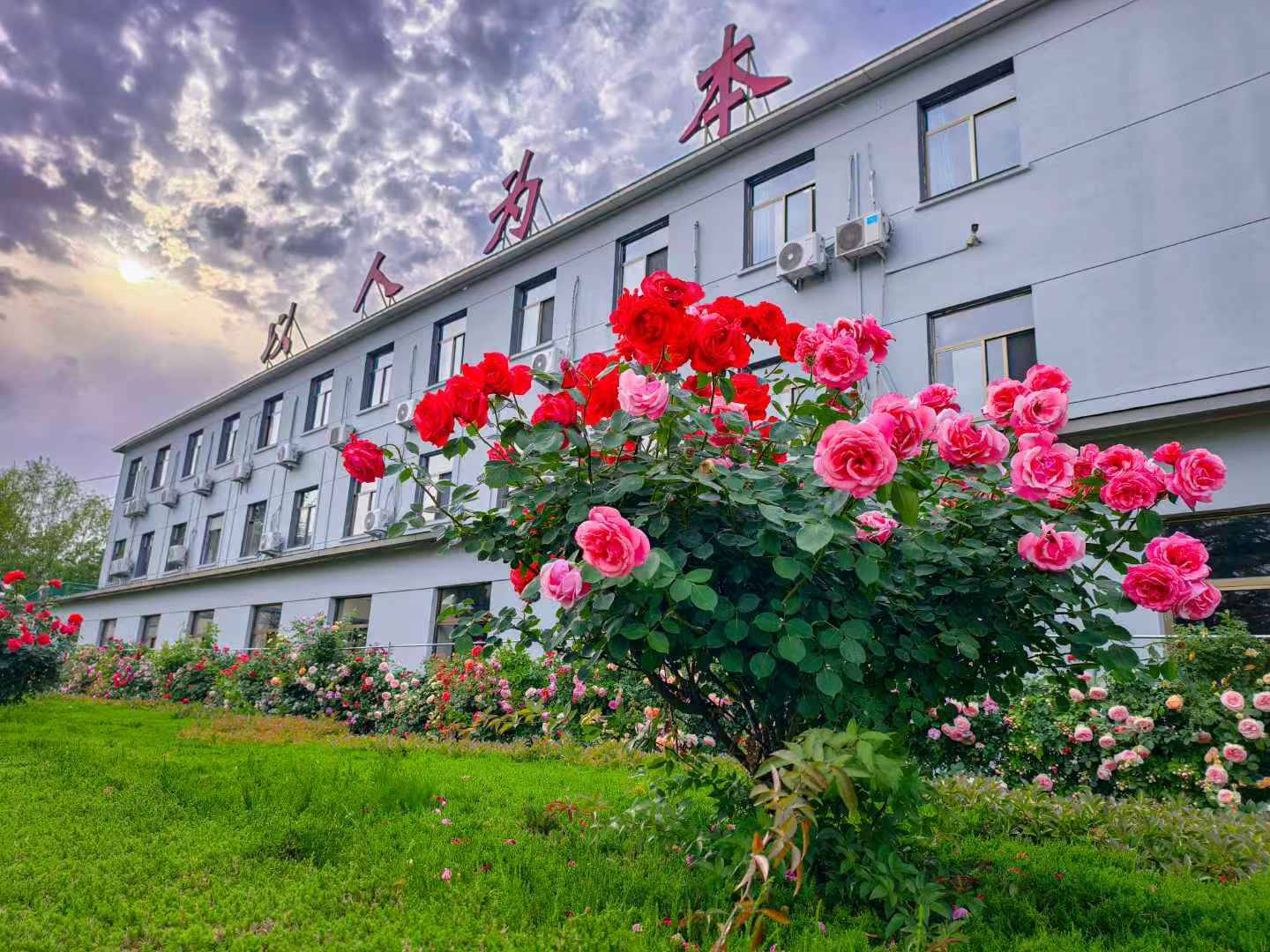 在平安园、幸福餐厅、公寓楼等空闲土地及卫生边缘角落,他们架设起“鲜花栅栏”和“微型花坛”,有设计性地进行时花补种、绿化修剪。截至目前,共绿化面积1300余平方米,增添麦冬、月季、红叶石楠、黄杨等绿植花木近百棵,花卉氛围呈现率达65%。