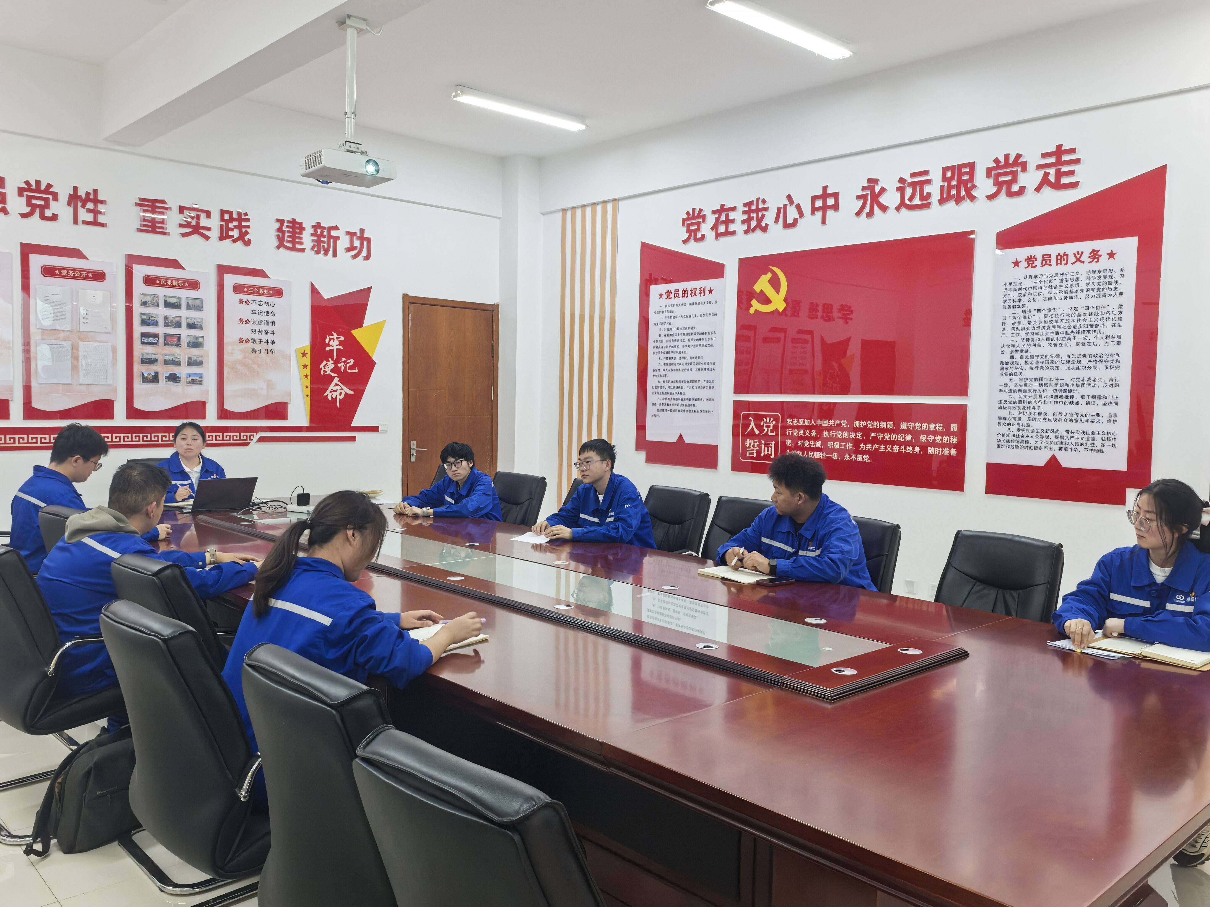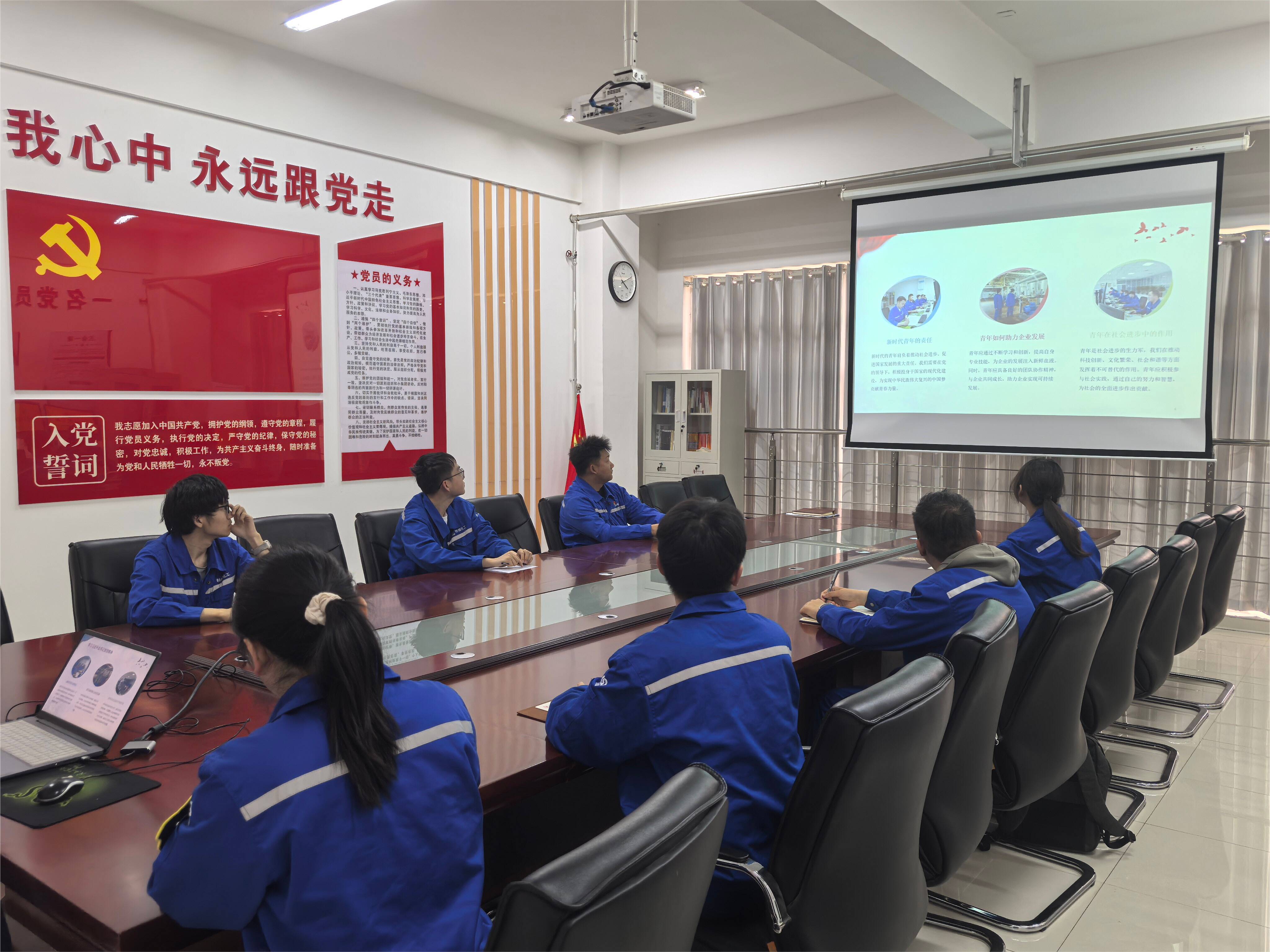开展专题团课,筑牢思想根基。团支部组织“学习习近平总书记重要贺信精神”主题团课,结合岗位实际,解读精神内涵,引导青年团员将个人成长融入企业发展,苦练专业技能、钻研工艺优化,勇于突破技术瓶颈,把学习成果转化为履职实效。团课结束后,组织团员青年重温入团誓词、集体宣誓,强化仪式感,增强团员身份意识与责任担当。