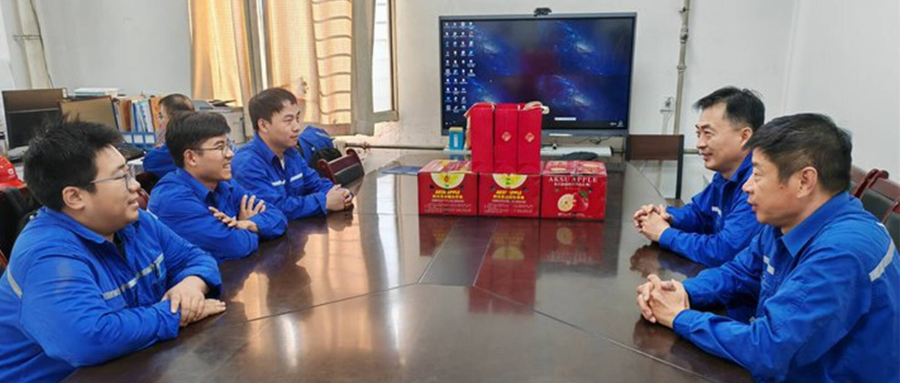 家访暖心,后盾更坚实。元旦、春节等重要节假日,公司领导带队走访驻外职工家庭,与家属唠家常、问需求,送上米面油等慰问品。针对驻外职工李金龙家的特殊情况,多次上门关切残疾子女康复与治疗,送去适配康复器具和儿童书籍,让他在外工作“无后顾之忧”。