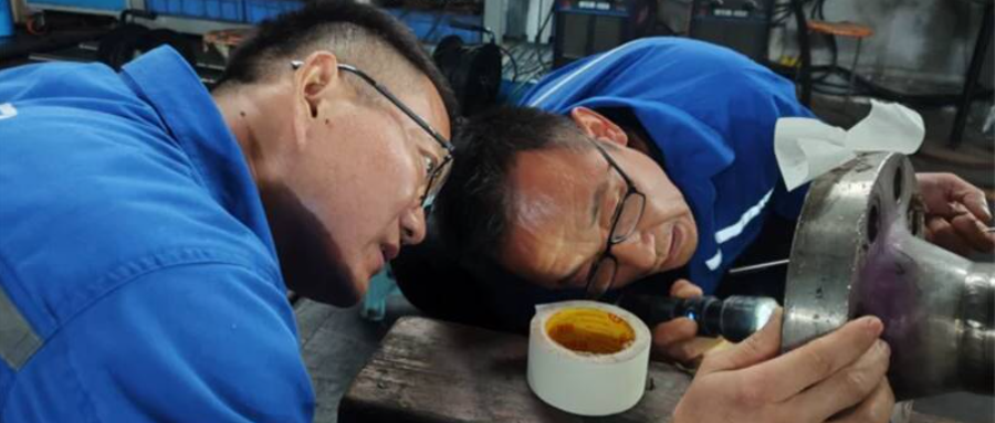 面对现场焊工的提问,马兆利不仅逐一给出精准答案,更延伸讲解背后的技术原理与解决思路。这种“问啥答啥、按需教学”的模式,让员工们既能解决当下难题,又能掌握举一反三的能力,真正实现“学完能用、用即见效”。理论讲解结束后,马兆利带领大家来到烧嘴维修现场,手把手开展实操指导,让技艺传承更添“烟火气”。